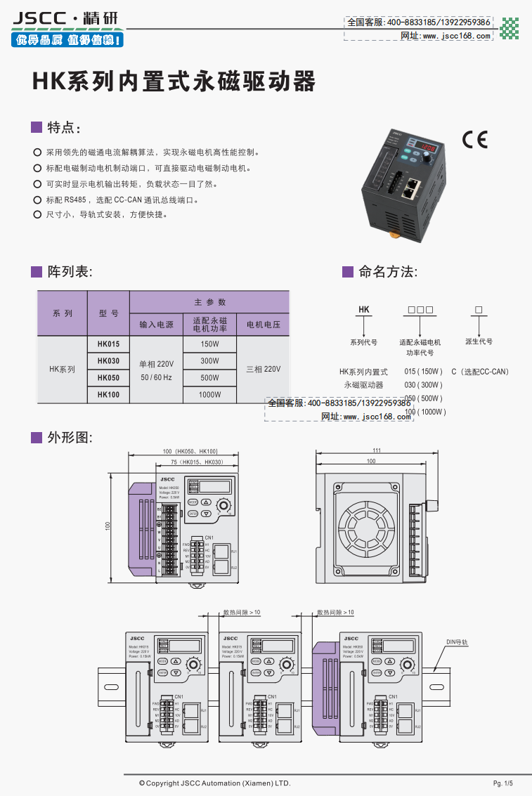 精研電機始終秉承“精益求精,研發創新”的理念為客戶提供優質可靠的產品。 HK系列內置式永磁驅動器,配合HS系列永磁同步減速電機使用,實現永磁電機高性能控制,可直接驅動電磁制動電機,實時顯示電機輸出轉矩,標配 RS-485 ,選配CC-CAN 通訊總線端口,導軌式安裝,方便快捷。