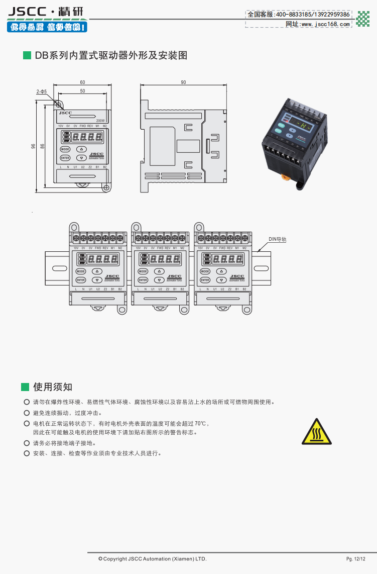 精研電機始終秉承“精益求精,研發(fā)創(chuàng)新”的理念為客戶提供優(yōu)質可靠的產(chǎn)品。 DB系列內(nèi)置式驅動器是精研針對YS系列標準電機,YR系列阻尼電機,YB系列電磁制動電機推出的驅動器。DB系列能幫助它們實現(xiàn)緩慢加減速,快速停止,電磁制動等動作控制。 提示DB系列需要搭配我司YS,YR,YB系列調(diào)速電機使用,在選購本產(chǎn)品時請注意。